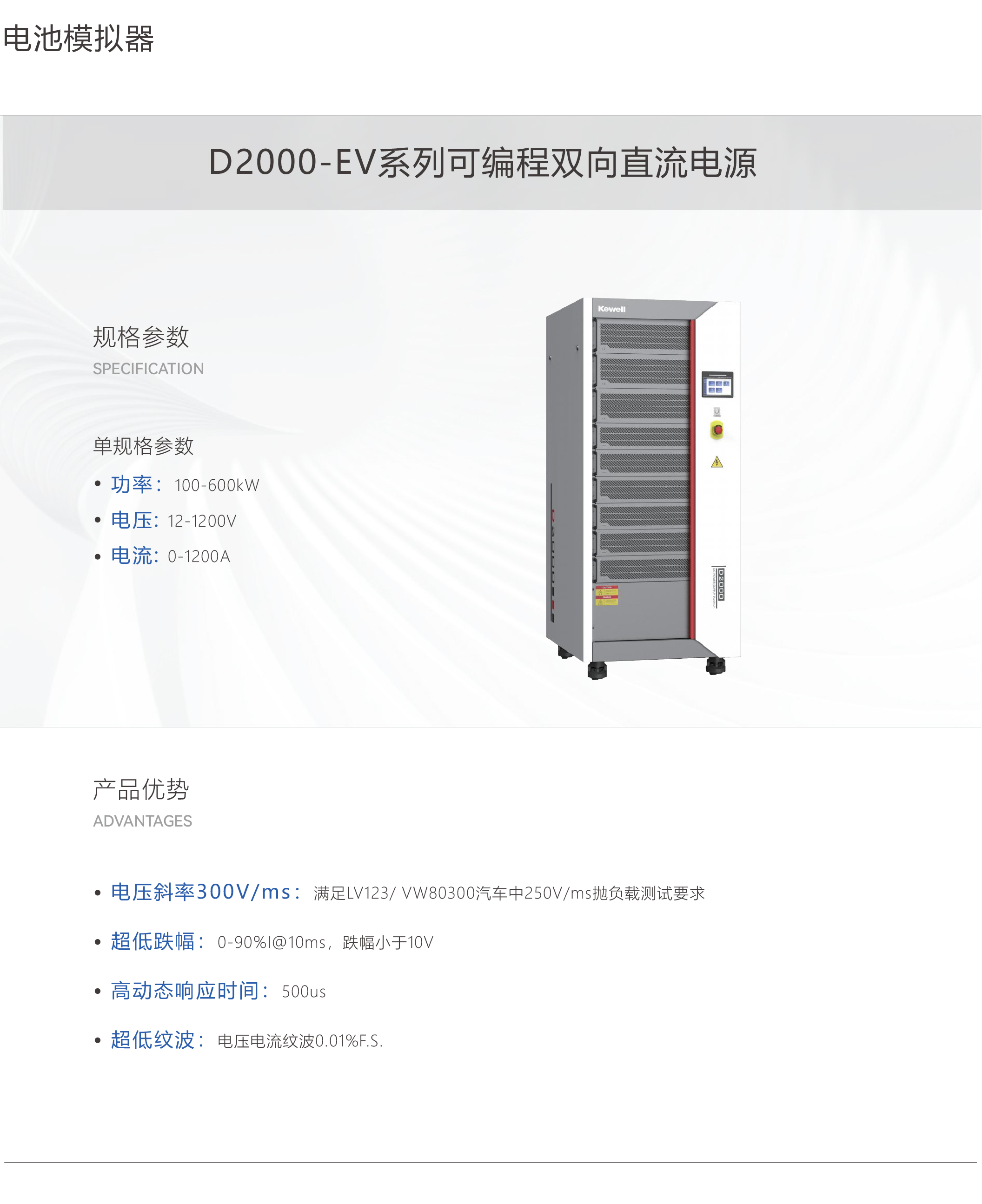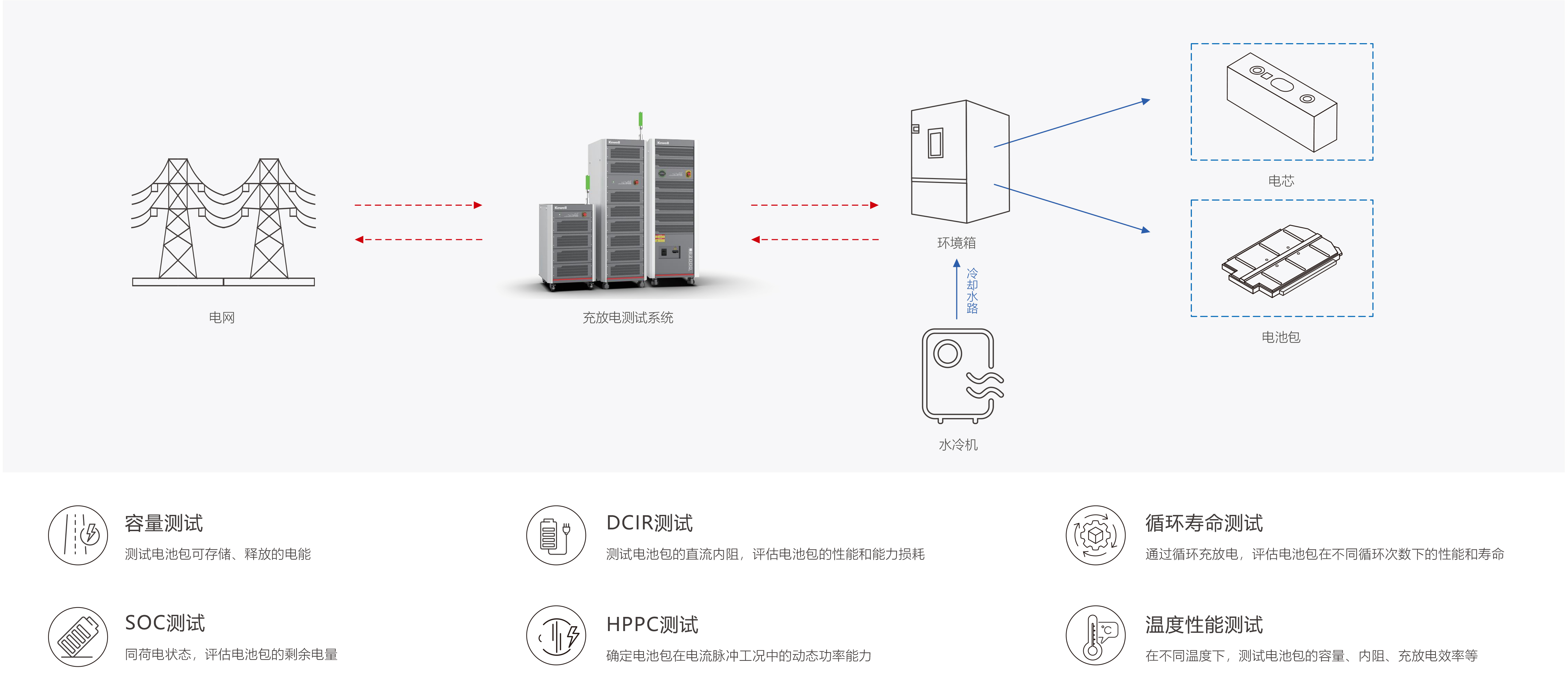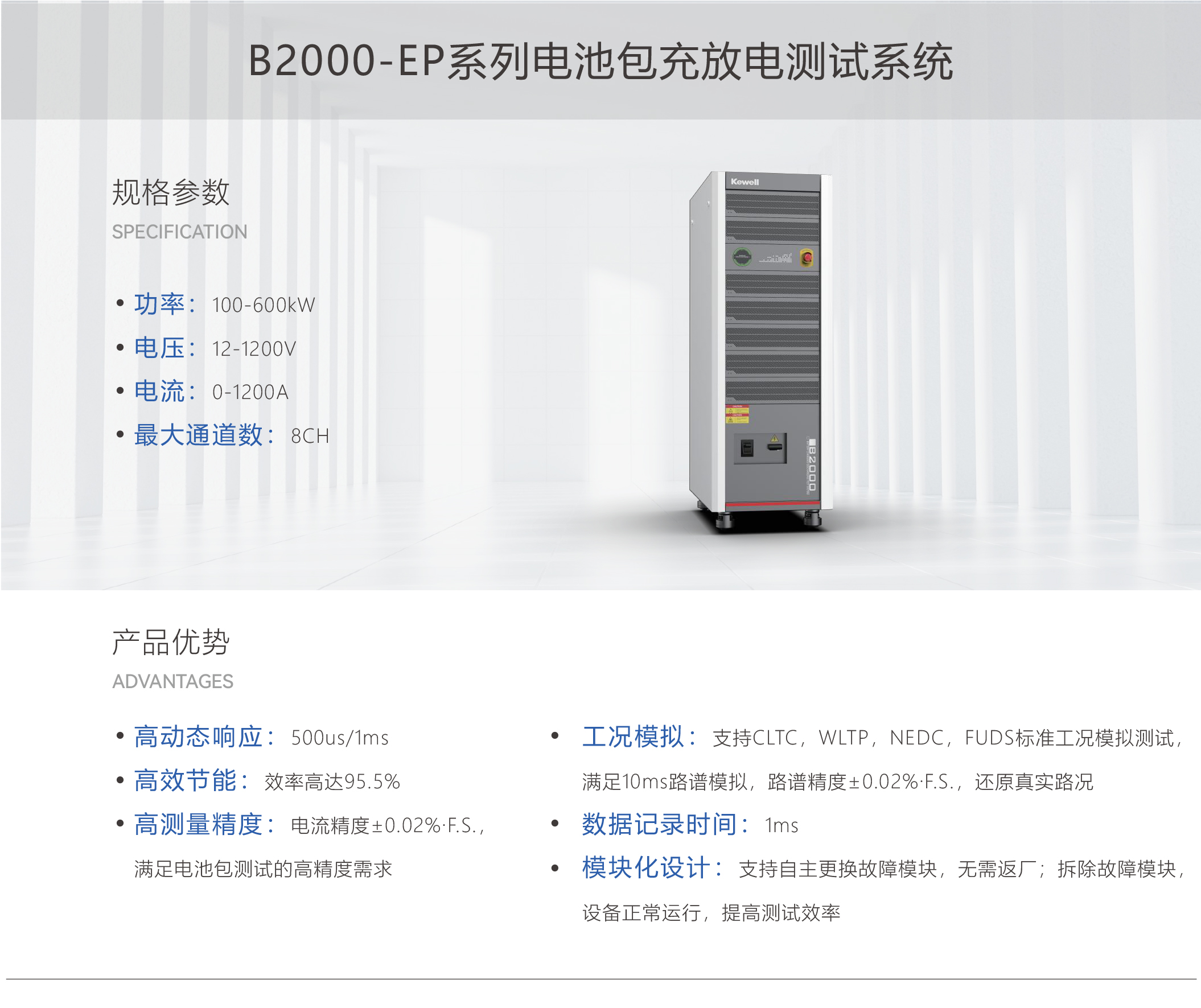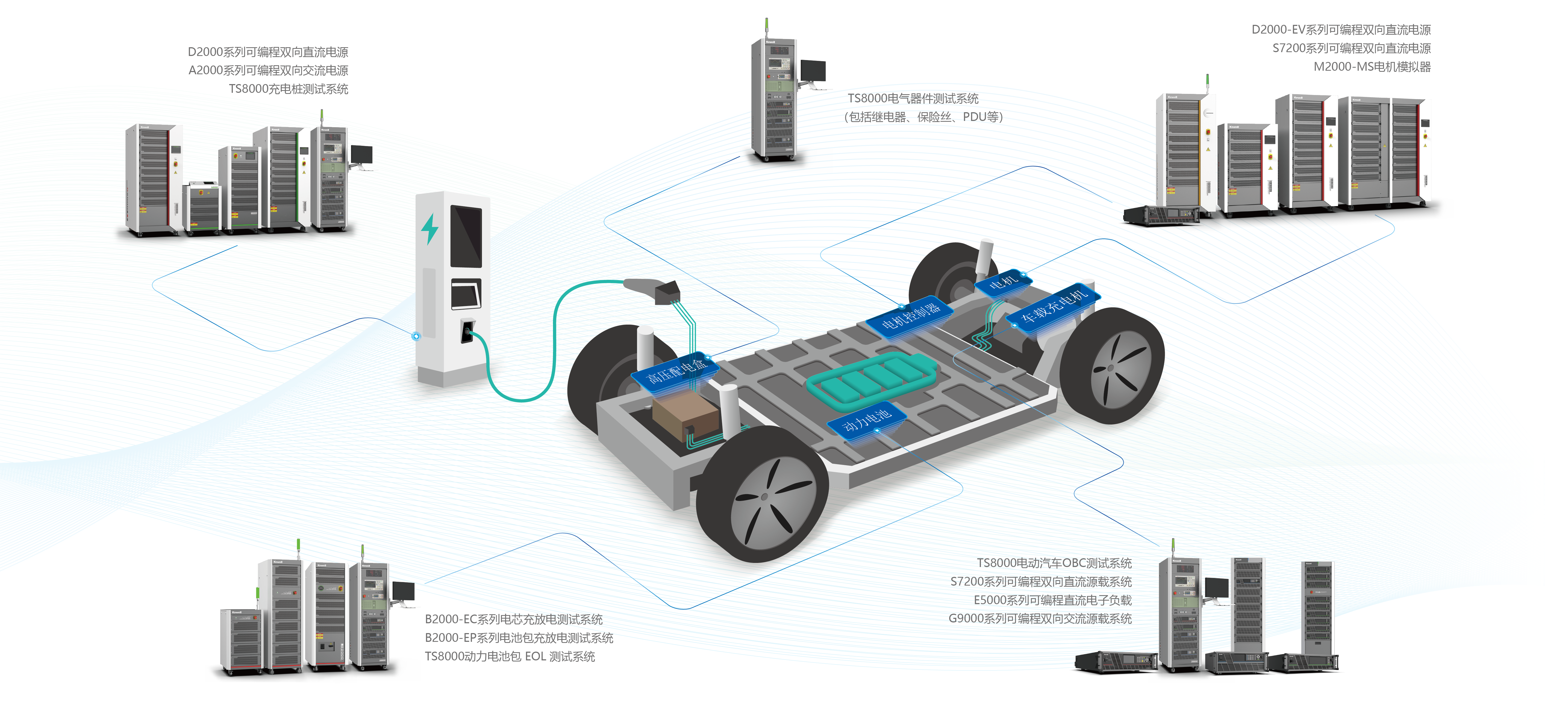针对动力电池包的下线测试而设计的集成化、智能化测试解决方案。包含安规测试,绝缘测试,BMS功能测试,继电器测试,温度检测,SOC 检测等测试项目,充分覆盖电池包的典型测试工艺要求。
