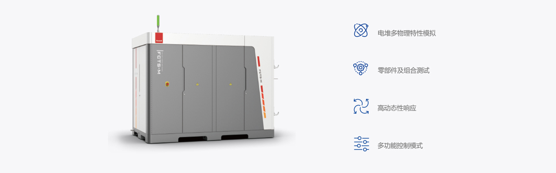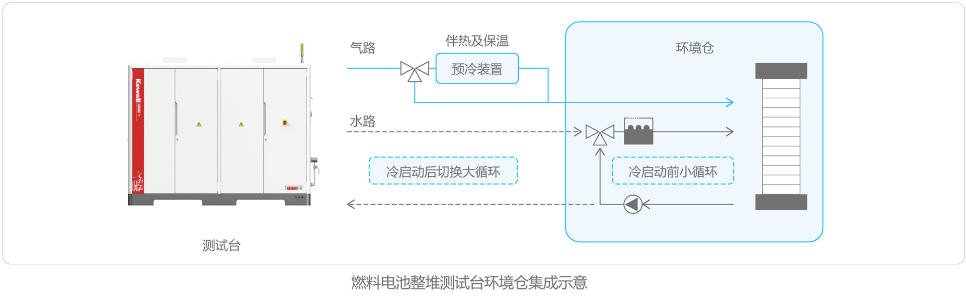 FCTS-B系列燃料电池子系统测试台满足燃料电池氢气子系统测试、空气子系统测试和热管理子系统测试,满足零部件及系统组合验证测试。