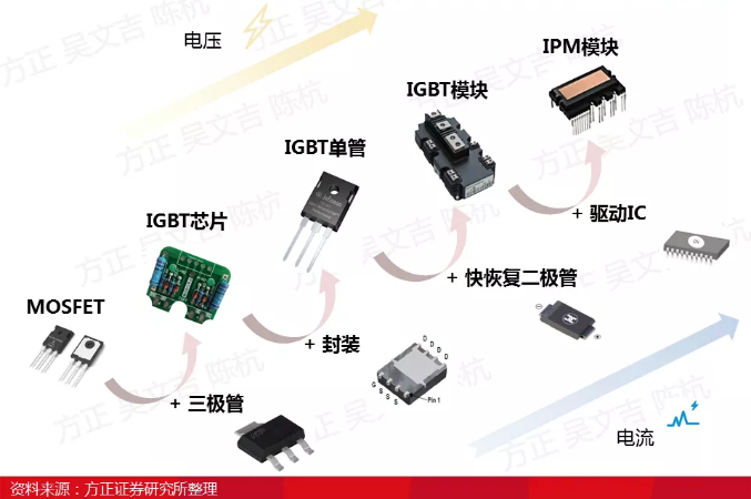 随着我国下游应用产品的旺盛需求,从应用领域来看,工业控制、消费电子、计算机、汽车电子、通信等领域是我国功率半导体领域需求最大的几个领域,我国功率半导体器件行业实现高速发展,。根据 IHS Markit 预测, MOSFET 和 IGBT 是未来 5 年增长最强劲的半导体功率器件。随着新能源车、光伏等行业的快速发展, MOSFET、 IGBT 在功率半导体的市场规模占比有望持续提升。IGBT 功率半导体器件广泛应用于电机节能、轨道交通、智能电网、航空航天、家用电器、汽车电子、新能源发电、新能源汽车等领域,应用前景十分广阔。