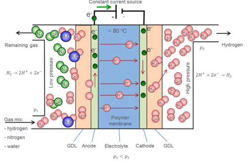 氢泵活化方式是通过将氢气从膜的一侧转移到另一侧来提高燃料电池性能的一种活化方式。电极上H2析出的反应如下: